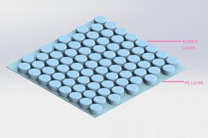2 layer bubble film is an excellent packing material because of its low cost nature and because its floppy bubble acts as a shockproof buffer to make sure that customers can get intact products and to prevent unnecessary loss. It is widely used in countless products including machine part, electric part, cosmetics, radiator and artifacts.
